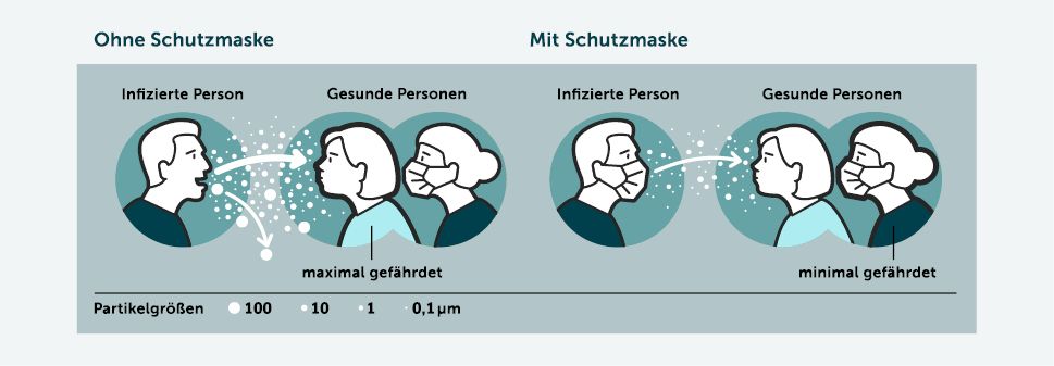 Verwendete Quellen: Robert Koch-Institut; Weltgesundheitsorganisation; Moldex; Uvex; Nature: Leung et al., 2020; Journal of Health Care Engineering: Lee et al., 2020; Epidemiol Infect: Suess et al., 2011; Cambridge University Press: Davies et al., 2013; Public Library of Science: Sande et al., 2008; New England Journal of Medicine: Doremalen et al., 2020; Lancet: Chu et al., 2020; Nature 586, 186-189 (2020), Lynne Peeples, Illustrationen: Die Zeit, Stand: 01/2021