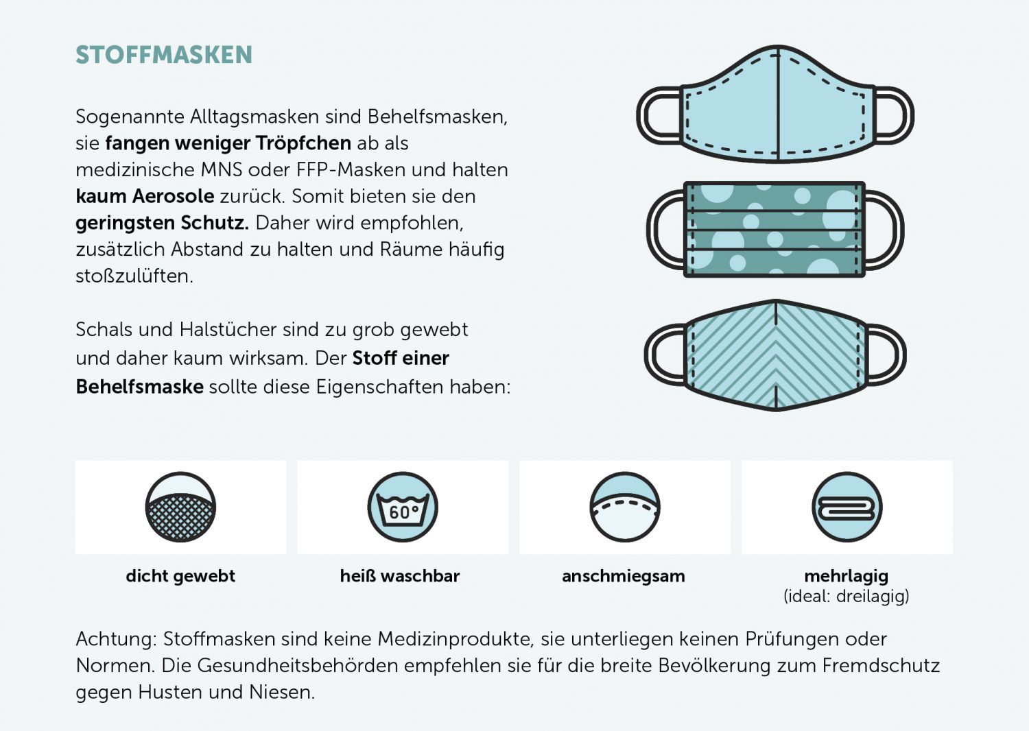 Personen, die eine Mund-Nasen-Bedeckung tragen, sollten unbedingt folgende Regeln berücksichtigen: